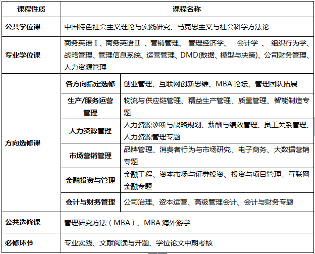 2.MBA專業學位研究生采用課程學習、實踐教學和學位論文相結合的培養方式。