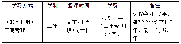 在職學習,每周末集中上課或每月周五晚+周六日集中上課結合;采用學分制,課程學分5年內滾動有效。