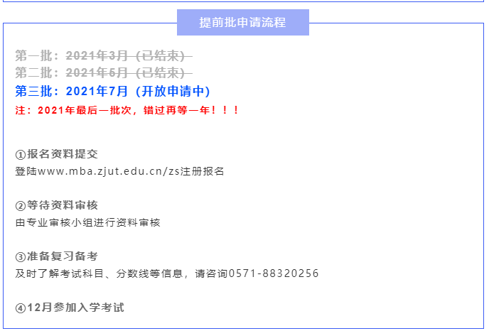 以上就是“2022MBA招生簡章:浙江工業(yè)大學2022年工商管理碩士(MBA)提前批招生簡章”更多MBA招生簡章信息,請多多關(guān)注社科賽斯MBA備考網(wǎng),預(yù)祝大家考研成功,順利上岸!