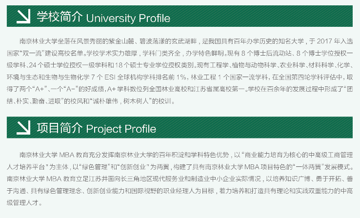 導(dǎo)讀:招生簡(jiǎn)章是每年考研er需要關(guān)注的重要官方政策,一般情況下涵蓋了各個(gè)專業(yè)的報(bào)考條件、招生名額、學(xué)費(fèi)、學(xué)制、報(bào)考流程等必要信息,為了幫助大家及時(shí)掌握一手信息,迅速做出報(bào)考應(yīng)對(duì),小編今天為大家?guī)?lái)了“2022MBA招生簡(jiǎn)章:南京林業(yè)大學(xué)2022年工商管理碩士(MBA)招生簡(jiǎn)章”,希望對(duì)報(bào)考MBA的同學(xué)有所幫助!