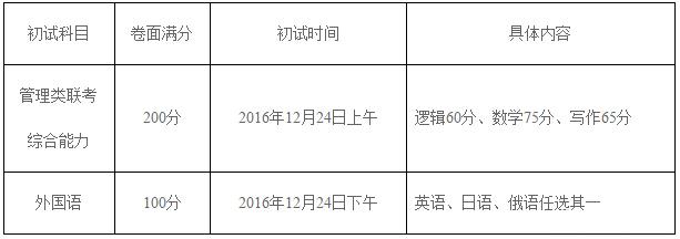 入學(xué)考試分為初試和復(fù)試兩個(gè)部分。初試為全國(guó)聯(lián)考,包括外語(yǔ)和管理類聯(lián)考綜合能力,考試地點(diǎn)詳見準(zhǔn)考證。復(fù)試時(shí)間為2017年4月。